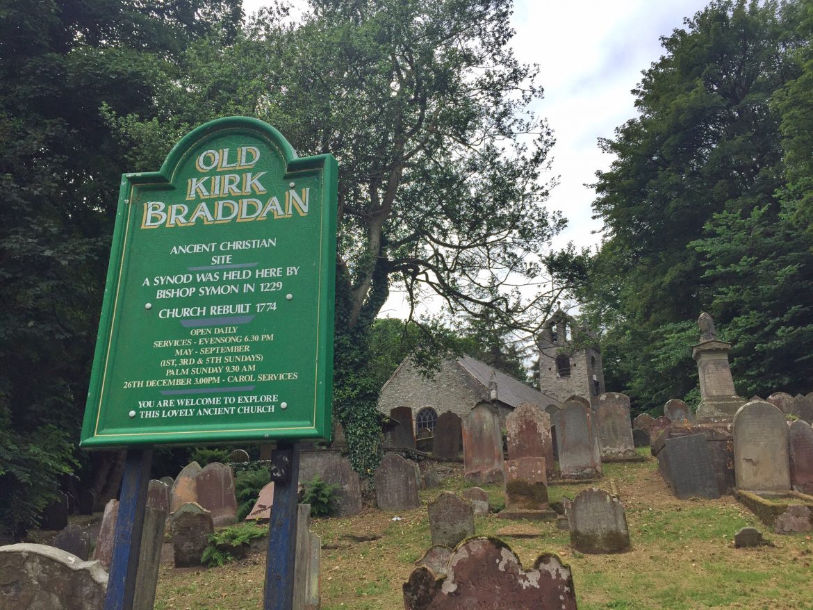Built on a site which has been used for religious purposes since the earliest times, Old Kirk Braddan was rebuilt in 1774 and was never re-ordered in Victorian times. It contains its original box pews, gallery and a “three-decker” pulpit, with a lectern, minister’s pew and pulpit above. It now houses several Celtic and Norse crosses from the period 800-1265 CE, which were found in the parish. The church is still used occasionally for worship. It is entered in the Protected Buildings Register, and maintained by the Friends of Old Kirk Braddan. It was featured in a 35p Christmas stamp issued by the Isle of Man Post Office in 2010.