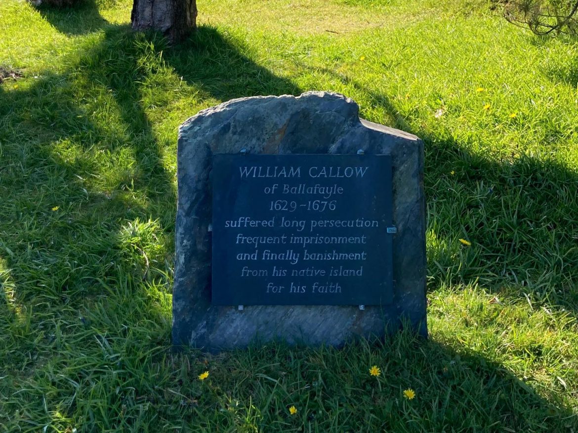 “I, WILL CALLOW, of Ballafayle, Manksman, who have been banished out off the Ile off Man by the Bishops and Priests for conscience towards God, above two years and three months from my dear wife and tender children, and have bought this book the rate 8s 10d in London where I am now in Robert Bridge’s house in Hosier lane, coach builder, near Smithfield. I say this day being the first of the 11th month in the year 1667 as witness my own handwriting the day and year above said.”